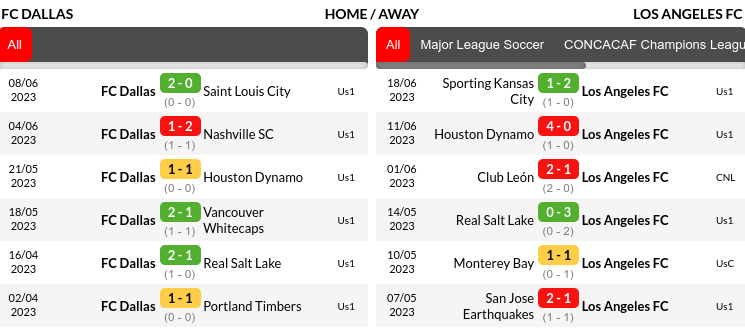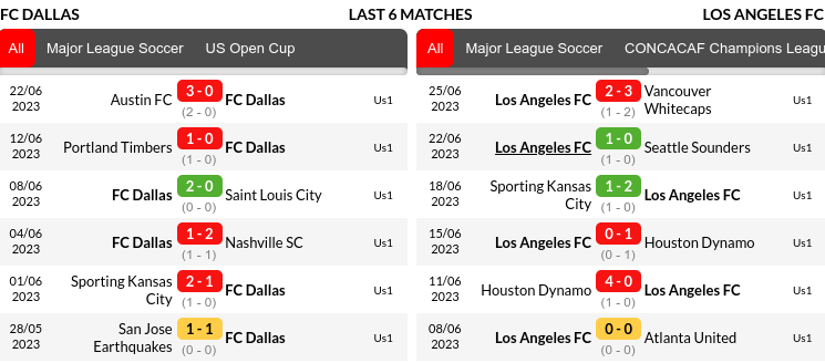 - In their previous MLS fixture, Los Angeles emerged victorious with a 2-1 scoreline against Dallas at BMO Stadium in March.