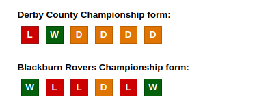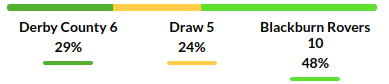 - Derby has drawn their last four matches and is unbeaten in their last five championship games.