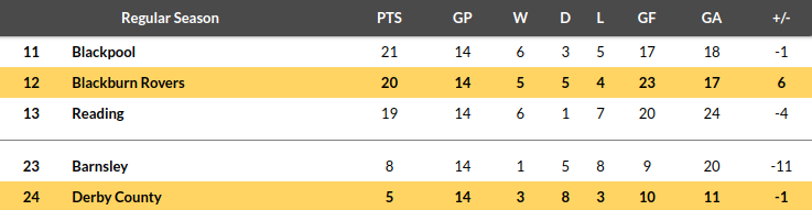 There have been 3 staight away losses in Championship for Blackburn Rovers.