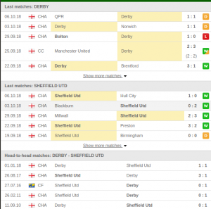 Derby vs Sheffield Utd Predictions & H2H: Head to head