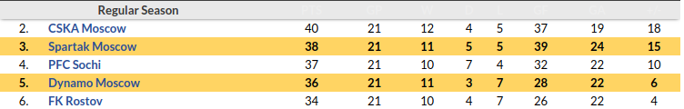 Dinamo Moscow vs Spartak Moscow Prediction: Standing