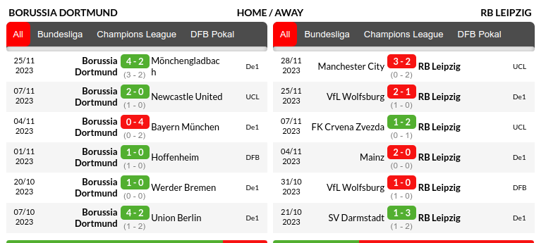 In their recent six league matches, Dortmund has secured two wins, two draws, and suffered two losses. Leipzig, on the other hand, has won four and lost two in their last six outings.