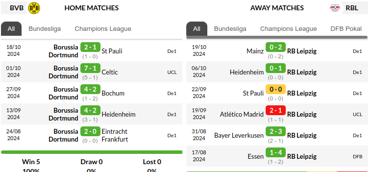 Both Dortmund and Leipzig have equal chances of winning.The head-to-head record is evenly matched, with both teams winning seven times and drawing twice.