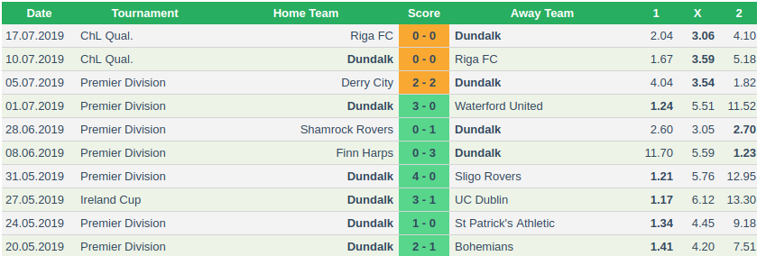 Dundalk Vs Qarabag Prediction: Dundalk Last Matches