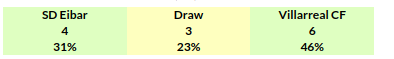 Eibar vs Villarreal Prediction: Home/Away Matches