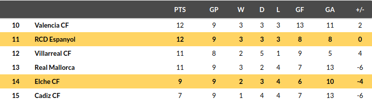Elche vs Espanyol Prediction: STANDING