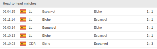 Elche vs Espanyol Prediction: H2H