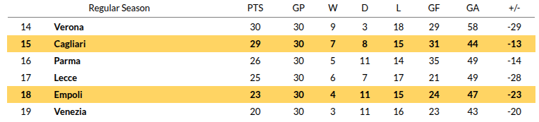 The Sardinians ended a poor run with a 3-0 thrashing of Monza, offering hope in their relegation survival bid. However, their away record remains concerning—just one win in their last 12 league trips (D4, L7). A repeat of their March 2024 win at Empoli would provide a crucial cushion in the standings.