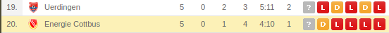 - Energie Cottbus are having worst moments in the last five league games with no win losing four and drawing one game.