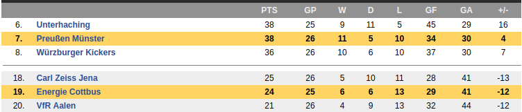 Energie Cottbus Vs Preussen Munster Prediction: Standing