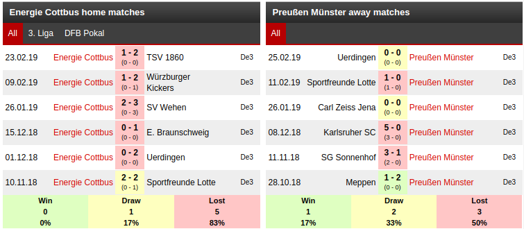 Energie Cottbus Vs Preussen Munster Prediction: Home/Away Matches