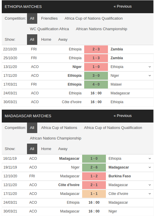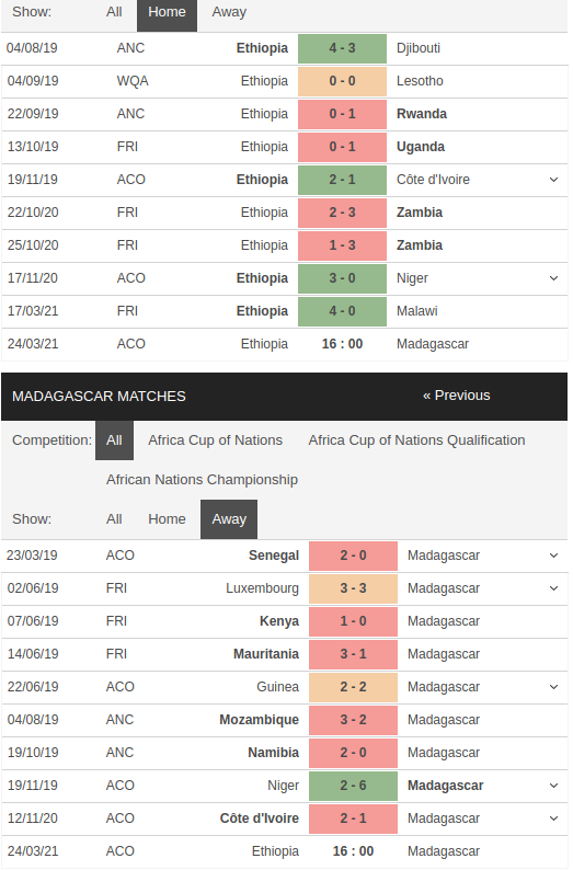 Ethiopia vs Madagascar Predictions: Home/Away Matches