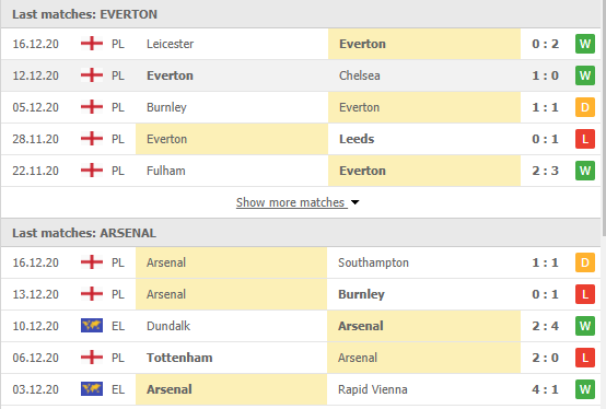 Everton Vs Arsenal Prediction: Last Five matches