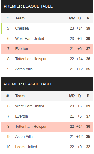 - The first leg of these two sides in the premier league saw Everton beat Tottenham 1-0.