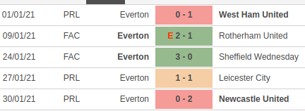- Everton have performed better away from than at their own backyard, they have managed just three wins from their last 10 matches at Goodson Park.