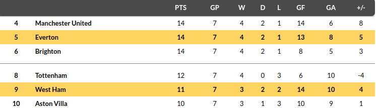 Everton vs West Ham Prediction: Standing