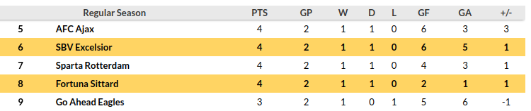 Excelsior currently occupies the sixth position in the standings, having accumulated four points from their first two matches.