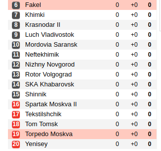 Fakel Vs FC Torpedo Moscow Prediction: Standing