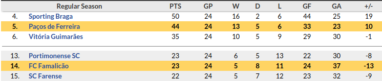 Famalicao vs Pacos Ferreira Prediction: Standing
