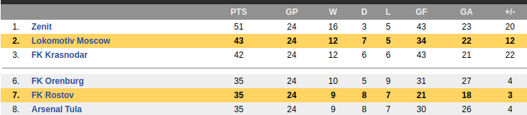 FC Rostov Vs Lokomotiv Moscow Prediction: Standing