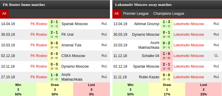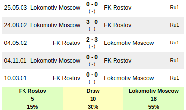 FK Rostov vs Lokomotiv Moscow: Head to head