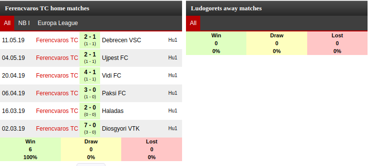 Ferencvaros TC Vs Ludogorets Razgrad Prediction: Home/Away Matches