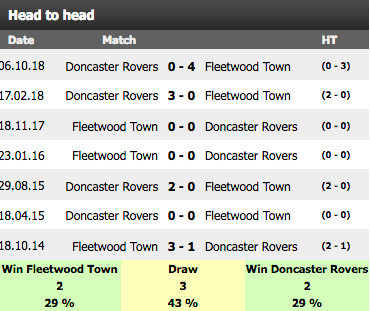 Fleetwood have won one game and drawn two in the three home meetings with Doncaster.