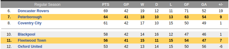 - Petersborough are still in contention for a place in the top with a game in hand and just four point adrift.
