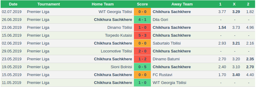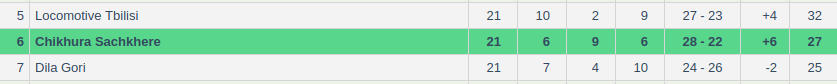 - Chikhura had a rather hard time last season in the Crystalbet Erovnuli Liga as they finished at position six on the table.