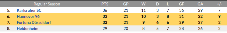 Fortuna Dusseldorf vs Hannover Prediction: Standing