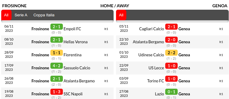 In their quest to avoid adding to their recent losses, Frosinone will likely rely on the comfort of their home ground. Despite an overall concerning record, Eusebio Di Francesco’s squad remains unbeaten at home in their last five Serie A games (W4, D1). Notably, they stand on the verge of making history against Genoa, as they have never before achieved six consecutive unbeaten games at the Stadio Benito Stirpe.