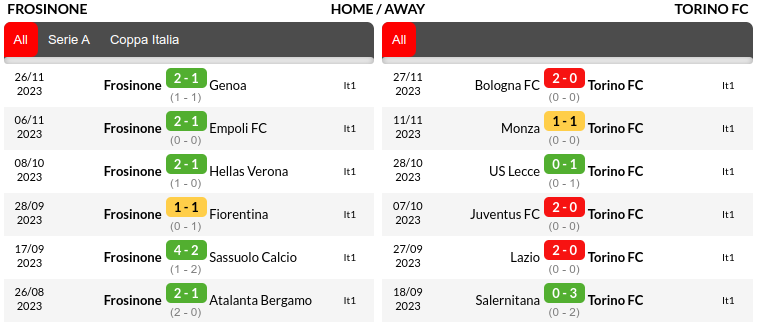 The last Serie A meeting between these teams occurred at Stadio Benito Stirpe in March 2019, where Torino emerged victorious with a 2-1 scoreline.