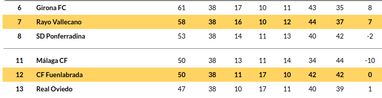 Fuenlabrada vs Rayo Vallecano Prediction: Standing
