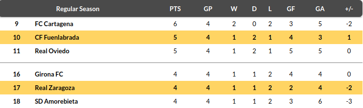 - Fuenlabrada have claimed one win from the opening four matches, with two draws and a defeat to their name.