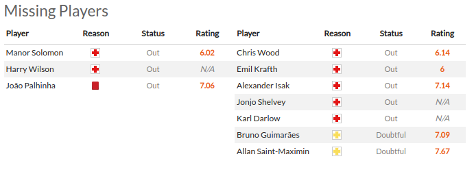 Pope; Trippier, Botman, Burn, Targett; Willock, S. Longstaff, Joelinton; Almiron, Wilson, Fraser