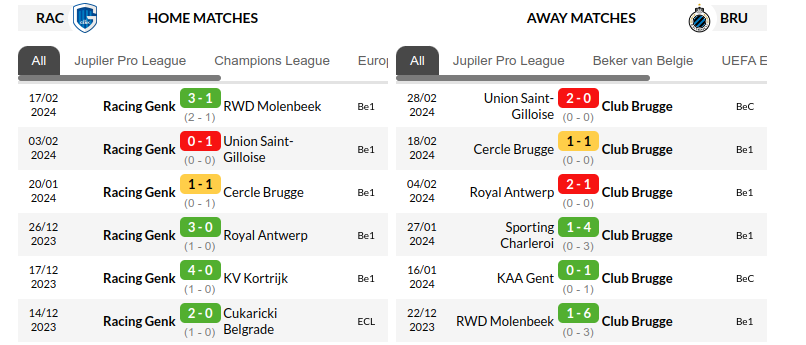 - Genk hold the upper hand in recent meetings, winning three and drawing one in their last four encounters against Club Brugge.