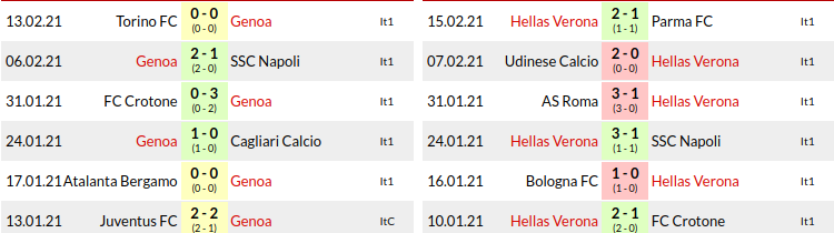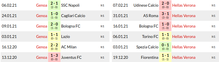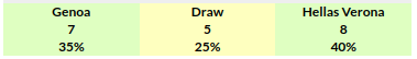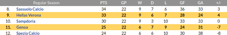 - At home, Genoa have won four of the 11 matches played, drawing two and losing five.