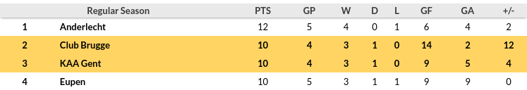 This strong performance places them in second position with 10 points after four matches, trailing leaders Anderlecht by just two points.