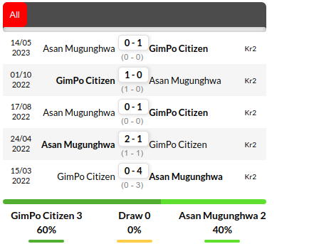 - Gimpo has enjoyed recent success against Chungnam Asan, winning three consecutive clashes since August 2022 and outscoring them 3-0 during this winning streak.