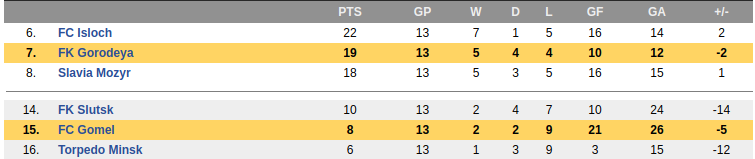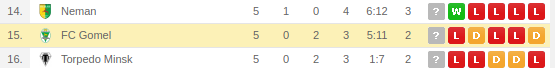 - Gomel have failed to secure a win in their last ten liga games as they suffered a 3-2 loss to Minsk in their last league game.