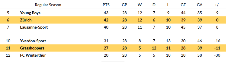 FC Zürich sit sixth with 42 points after their thrilling 3-2 win against Luzern. They trail leaders Servette by six points with six matches remaining. Grasshoppers earned a valuable point in their 1-1 draw with Sion, leaving them 11th with 27 points – just three above the relegation playoff spot.