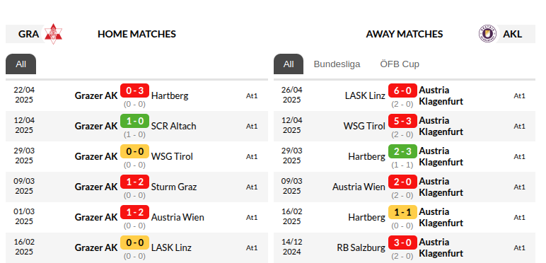 Home vs. Away Form: Grazer AK have claimed four points from nine at Merkur Arena this season, while Klagenfurt’s away record (one win, two losses) suggests vulnerability. Recent form favors Grazer slightly—one win in six compared to Klagenfurt’s solitary victory in the same span. However, with survival at stake, Klagenfurt could prove dangerous.
