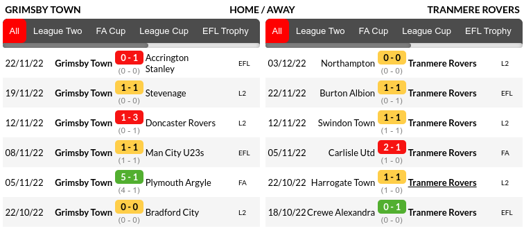 - Tranmere have won three of the last five meeting with Grimsby having one to their name.