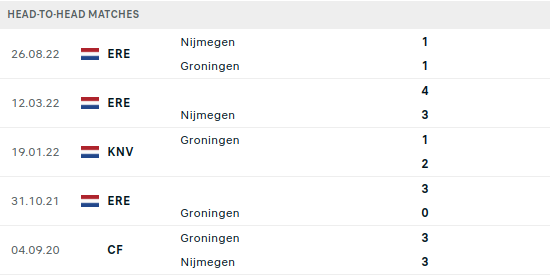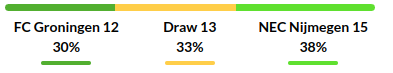 - NEC has won one, drawn two, and lost three of their last six matches, whereas Groningen has lost all of their last six league matches.