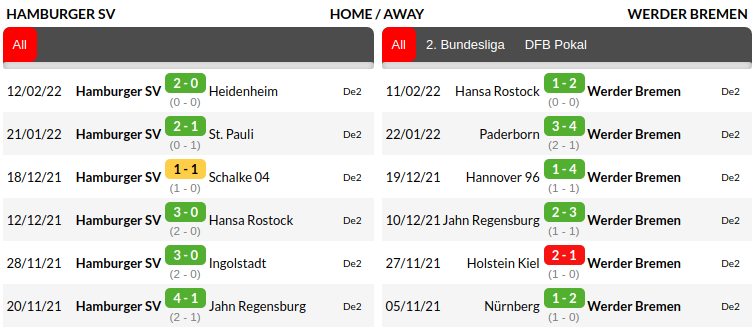 Hamburger vs Werder Bremen: H2H