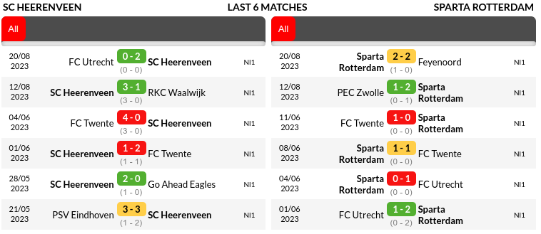 Heerenveen vs Sparta Rotterdam Prediction: Standing