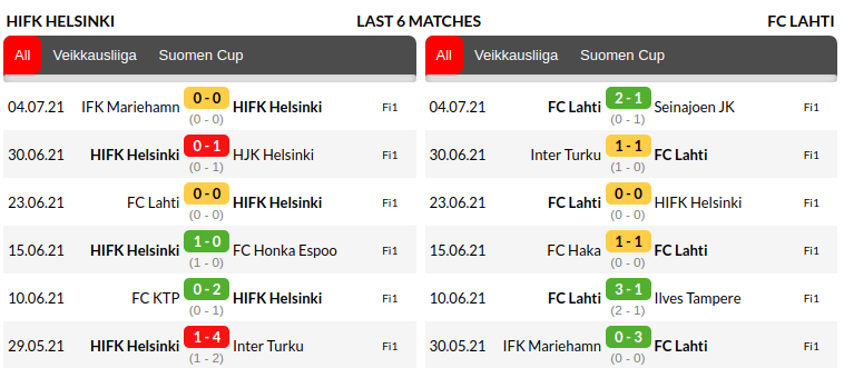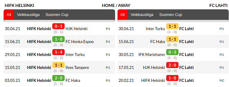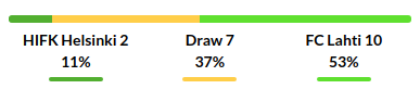 - Lahti continued their good with a 2-1 win last time out to extend their unbeaten to seven matches of four wins and three draws.