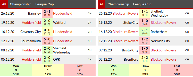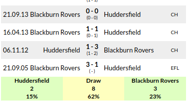 Huddersfield vs Blackburn Head-to-Head (H2H)