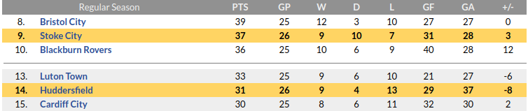 - The Potters who are fighting for a play off place and are five points outside the top six but will have to work on their recent form.