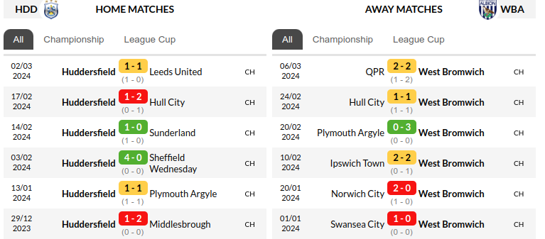- Huddersfield won the last encounter between the two teams 2-1, but West Brom have struggled against them recently, winning only one of their last six meetings.